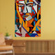 Abstraktes Gesicht Kubismus Rot Lila Blau Cool Poster
