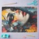 Abstraktes Graffiti-Frauengesicht-Dekoupage-Papier mit einer Nahaufnahme eines weiblichen Porträts, das über eine rissige Holzstruktur geschichtet ist, mit kräftigen Spritzern in Rot, Gelb, Blau und Schwarz. Das Design kombiniert Street-Art, urbanen Graffiti-Stil und eine abgenutzte Textur für einen dramatischen Mixed-Media-Look.