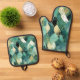 Abstraktes Green Gold Ofenhandschuh & Topflappen-Set