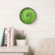 Die Rundwand ist mit einem schönen monochromatischen Spiralspiralen Fraktal in grünen Farbtönen und schwarzen Ziffern ausgestattet.