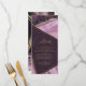 Dieses koordinierende Hochzeitsfest-Set mit abstrakten Agatmustern, texturiert mit Imitat-Kristallen und Highlights in glitzernden Imitaten Goldfolie sorgt für Glamour und Auftrieb. Auffallende Farbkombinationen, wie diese Suite mit ihrer luxuriösen Palette von abgestuften Trauben und Lila bis hin zu sanftem orchidem Rosa, schaffen den Hintergrund für die Stücke dieser koordinierten Kollektion. Diese zweite Version unseres Hochzeitsempfangsmenüs beinhaltet alles oben und eine elegante Kalligraphie auf einem kegelförmigen, halbtransparenten Etikett, um Ihre Menüauswahl zu halten. Eine Vorlage wird bereitgestellt, um Ihre Menüdetails, Initialen und Hochzeitstag einfach hinzuzufügen. Sehen Sie sich den Link Sammlung auf dieser Seite an, um alle passenden Elemente in diesem schönen Design zu sehen, oder suchen Sie ID827, um zusätzliche Farboptionen für dieses Design zu sehen.