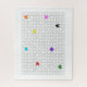 Das ist ein herausforderndes, fast ganz weißes Puzzle mit nur 8 bunten Stücken.