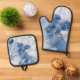 abstraktes Küstenmuster aus blauem Marmor Ofenhandschuh & Topflappen-Set