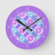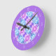 Abstraktes, lila Schneeflockenmuster Runde Wanduhr