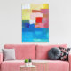 Abstraktes Malermeer / Insel / Himmel mit rotem Platz und gelben und blauen Farbtönen