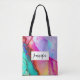 Eine personalisierte Schultertasche mit einem extravaganten, künstlerisch abstrakten Design. Aquarellmalerei mit Farbmischungen und Vermischungen, die ein angenehmes fließendes Muster schaffen. Ein weißer Rahmen mit einem Imitat mit goldener Folienabdeckung überlagert mit einem personalisierten Text, der innen geschrieben ist.
