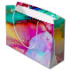 große Geschenktasche mit extravagantem, abstrakten Design. Wasserfarbenmalerei mit Farbmischungen und -mischungen, die ein fließendes Marmormuster erzeugen.
