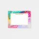 Personalisierte Post-it-Noten mit einem extravaganten künstlerisch abstrakten Design. Aquarellmalerei mit Farbmischungen und Mingeln, die ein fließendes Muster erzeugen. Ein weißer Rahmen mit einem Imitat mit einer goldenen Folie, die oben platziert ist, damit Sie Ihre Notizen im Inneren schreiben können.