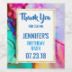 Party bedankt sich bei Weinflaschen mit einem extravaganten, abstrakten Design. Wasserfarbenmalerei mit Farbmischungen und -mischungen, die ein fließendes Marmormuster erzeugen. Ein weißer Rahmen mit einem Imitat mit goldener Folienabdeckung überlagert mit einem personalisierten Text, der innen geschrieben ist.