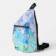 Auf dieser lebendigen Druckausschnitt Nähtasche ist ein psychedelisches Marmor Wirblen Muster von blau, rosa, lila und grün . Groovy Hippie Vibes. Kann auch vorne auf einem blauen Kreis personalisiert werden