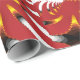 Ein abstraktes Kunstdesign einer mythischen Kreatur, die an ein Meeresanemon erinnert, in Rot, Gelb, Weiß und Gold.