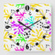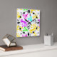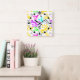 Abstraktes mehrfarbiges Neonmuster Quadratische Wanduhr