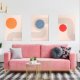 Abstrakt minimalistische Kompositionen Mitte des Jahrhunderts Wanddekoration mit Kreisen und Bogen Linien, Set von drei.