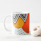 Diese Tasse hat ein modernes Design aus kurvigen und zigzackigen Linien in Schwarz, Kreise in Gelb, Orange und Grün und ein Rechteck aus gestrichelten aquamarinen Linien. Wenn Sie das gleiche Design mit verschiedenen Farben gewollt haben, schreiben Sie mir.
