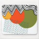 Dieses Mauspad hat ein modernes Design aus kurvigen und zigzackigen Linien in Schwarz, Kreise in Gelb, Orange und Grün und ein Rechteck aus gestrichelten aquamarinen Linien. Wenn Sie das gleiche Design mit verschiedenen Farben gewollt haben, schreiben Sie mir.