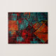 Abstraktes, modernes, Cooles Kunstmuster. Red Orange Blue Squares Abstrakt Art Jigsaw Puzzle.