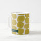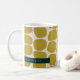 Abstrakte, moderne Formen, personalisierte Tasse. Feierliche Farbtöne von Grün und Imitat Gold mit Template Textzeile für Namen oder Initialen.