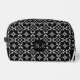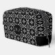 Toilettenbeutel mit inspiriertem Bogen-Muster mit weißen und grauen Punkten und ovalen Formen auf schwarzem Hintergrund. Fügen Sie Ihre eigene persönliche Touch hinzu, indem Sie die leicht zu bedienende Vorlage bearbeiten und Ihre eigenen Initialen verwenden, oder entfernen Sie den Text ganz. Die klassischen Graustufen-Farben sind sowohl für Männer als auch für Frauen hervorragend, passt gut zu jeder anderen Farbe.