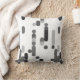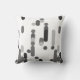 Dieses moderne Kissen zeichnet sich durch ein abstraktes Muster mit kreisförmigen geometrischen Formen in schwarz und grau auf weißem Hintergrund aus.