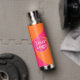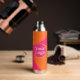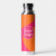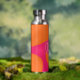 Abstraktes Motiv in Rosa und Orange mit Logo Trinkflasche