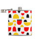 Originelles, nahtloses abstraktes Muster aus fett gezogenen, halb ovalen und halbkreisförmigen Formen, rot, gelb und schwarz auf weißem/transparentem Hintergrund.