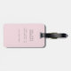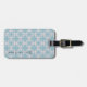 Blush Kettenmuster auf hellblauem Hintergrund mit einem benutzerdefinierten vertikalen Monogramm in einem serifenlosen Schriftart. Auf der Rückseite befinden sich persönliche Informationen in einem serifenlosen minimalistischen Schriftart auf hellblütigem Hintergrund. Karo in unserem Shop für mehr Gepäckanhänger Optionen.