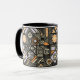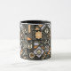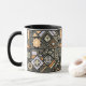 Abstraktes Muster mit geometrischen Formen und Linien auf schwarzem BKground.