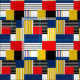 Abstraktes Muster. Patchwork , rot , gelb , blau , weiß , schwarz , gemischt , Streifen , gestreift , kariert , kariert