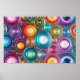Eine lebendige Reihe von farbenfrohen, konzentrischen Kreisen und Gängen schafft ein faszinierendes, abstraktes Muster. Unterschiedliche Größen und Farbtöne verschmelzen und erzeugen eine dynamische und visuell auffällige Komposition.