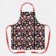 Diese Schürze hat einen geometrisch kreisförmigen abstrakten roten Kugeln mit größeren weißen Kugeln auf schwarzem Hintergrund.
