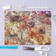 Abstrakte Sonnenblumenmalerei in Herbstfarben auf atemberaubenden Geschenken und Dekoration.