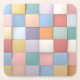 Dieses abstrakte Bild ist ein visuell auffälliges Muster einer Wand aus quadratischen Fliesen. Die Quadrate sind in einem regelmäßigen Raster angeordnet und in einer sanften, beruhigenden Pastellfarben gehalten, die Rosa-, Orange- und Grüntöne umfasst. Der subtile 3D-Effekt der Fliesen und ihre texturierte, matte Oberfläche schaffen ein sauberes und modernes Hintergrunddesign.
