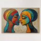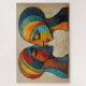 Abstraktes Gemälde von Paaren mit lebhaft farbigen stilisierten Gesichtern. Zeitgenössische Kunst mit einer strukturierten und dynamischen Komposition.