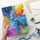 Dieses Verpackungspapier zeichnet sich durch ein farbenfrohes, abstraktes Regenbogen-Muster aus, das mit einer Farbe und Aquarellmalerei versehen ist.