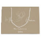 Beigefarbener Hintergrund und abstrakte Rentiere in weißer Farbe. Personalisieren Sie Ihren Namen und fügen Sie ihn hinzu. Text; Frohe Weihnachten Perfekt sowohl für Geschenkverpackung als auch als Weihnachtsbeutel, goodiebag Gastgeschenk.