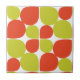 Diese Kachel weist eine abstrakte Blume mit Blütenblättern oder Teardrop-Mustern in Retro-Farbtönen von lebhaften Orange und Grün auf, die auf ähnlichen Motiven der Moderne des Mitteljahrhunderts in den 1950er, 1960er Jahren und sogar bis in die frühen 1970er Jahre basieren.