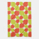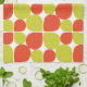 Dieses geflieste abstrakte Blume-Blütenmuster oder Teardrop-Muster, das dieses Küchentuch schmückt, basiert auf ähnlichen Retro-Motiven aus den 1950er, 1960er und sogar bis in die frühen 1970er Jahren. Es ist in einem zeitgenössischen Farbschema aus Zitrusorange und Grün gestaltet.