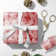 Abstraktes rotes Muster mit weißen Schneeflocken Geschenkpapier