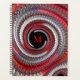 Dieses Produkt zeichnet sich durch eine wunderschöne spiralförmige Fraktal-Kunst in rot, schwarz, grau und weiß aus.