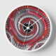 Die runde Wanduhr zeichnet sich durch eine wunderschöne spiralförmige Fraktal-Steigung in Rot, Schwarz, Grau und Weiß aus. Passen Sie das Bild selbst an oder ändern Sie die Rahmen- und Handfarbe, um die Innendekoration Anzug.
