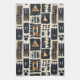Handgemaltes afrikanisches Lehmtuch mit fett geometrischen Formen in erdigen Tönen schwarz, braun und creme.
