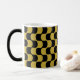 Diese elegante, abstrakte, verzerrte Schachbrettmuster-Tasse in Gold und Schwarz ist eine absolute Freude für alle, die eine Touch der Originalität in ihrem Stil suchen.