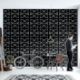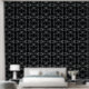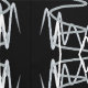 Schwarz-Weiß-symmetrisches Muster, weiße und graue Linien und Formen auf schwarzem Hintergrund