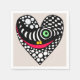 Abstraktes Schwarzweiß-Herz auf Papierservietten. Spaß für jedes Party oder jede Veranstaltung.