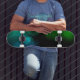 Abstraktes Skateboard mit blauen und grünen, rauchfreien Farben