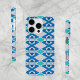 Original abstraktes Stammesmuster in hellen und dunkelblauen und türkisfarbenen Tönen. Einzigartiges Muster, das einem Stammesvibe-Design verleiht. Case-Mate iPhone Case, erhältlich für mehrere Gerätemodelle, einschließlich iPhone 16 Pro. Perfekte Geschenkidee für den besonderen Gast, oder besser noch, holen Sie sich einen für sich selbst ab. www.zazzle.com/store/tenfivepress Muster entworfen von TenFivePress.