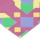 Lebhafte Komposition mit symmetrischer Anordnung lila, gelber, orangefarbener und blauer geometrischer Formen. Ausdruckt moderne Designelemente und vermittelt mit seinem dynamischen Muster ein Gefühl von Ausgewogenheit und Kreativität.