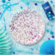 Ein wunderschönes abstraktes Muster-Design aus Terrazzo Mosaik in Rosa und Blau. Ideales Geburtstagsgeschenk, Kinderzimmer-Dekoration, Kinderspielkunst, Wohngestaltung, Weihnachtsgeschenk oder Geschenk für jeden anderen besondere Anlass.