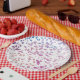 Abstraktes Terrazzo Mosaik Pink & Blue Muster Pappteller