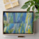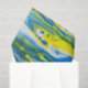 Abstraktes, blaues und gelbes Gewebepapier Originalmalerei von R. Lamb